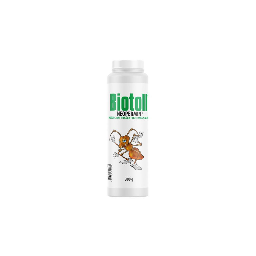 Sypký přípravek na hubení mravenců. Biotoll Neopermin se aplikuje posypem, nemá žádné aroma. Účinná látka: permethrin 5g/kg, kopretina starčkolistá extrakt 0,1g/kg. Nepoužívejte v blízkosti rostlin.