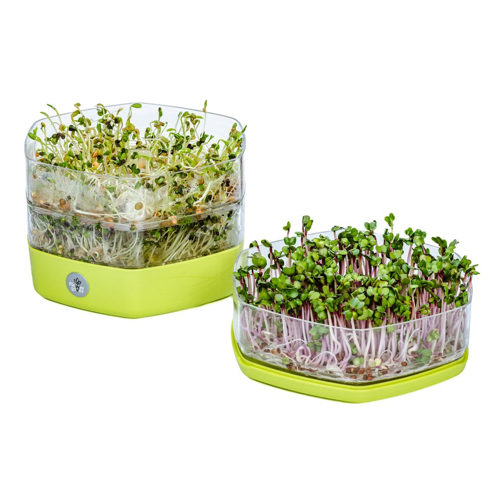 Klíčící miska z pevného plastu je tvořena třemi patry a umožňuje oddělené pěstování 3 druhů microgreens současně. Průhledné stěny vám umožní sledovat růst microgreens takřka v přímém přenosu.