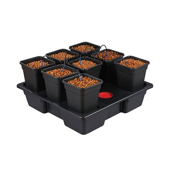Recirkulační drip systém systém Nutriculture Wilma XL 8x 11 l, kapková závlaha 90x90x20 cm umožňuje kvalitní pěstování jednoletých i víceletých rostlin ve sklenících nebo balkónech. Pohodlně se vejde i do pěstebních boxů s vhodnými rozměry. Živení probíhá efektivně a hospodárně. Čerpadlo přenáší zálivku do horní části květináčů a zavlažuje substrát. Kořenový systém vstřebá potřebné živiny, nevstřebaná výživa steče do nádrže. Při dalším zalévání bude opět využita. Tento druh hydroponické závlahy garantuje díky časovači a nádrži maximální komfort vašim rostlinám i ve chvílích, kdy se jim nemůžete z různých důvodů věnovat každý den.